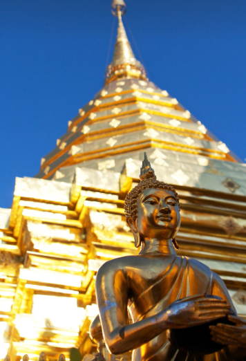 왓 프라탓 도이수텝 (Wat Phra That Doi Suthep)는 치앙마이를 대표하는 명소 중 하나입니다. 해발 약 1,000m의 도이수텝 산에 위치한 불교 사원이며 시내에서 차로 약 30분 정도 소요됩니다.